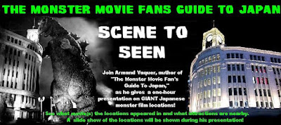 The presentation of Japanese monster movie locations, "Scene To Seen" for Monsterpalooza is taking shape. I've assembled about 90% of the photographs I plan to use during the one-hour presentation on Friday, April 8 at 8:00 PM (exactly two weeks from tonight). Mark your calendars!